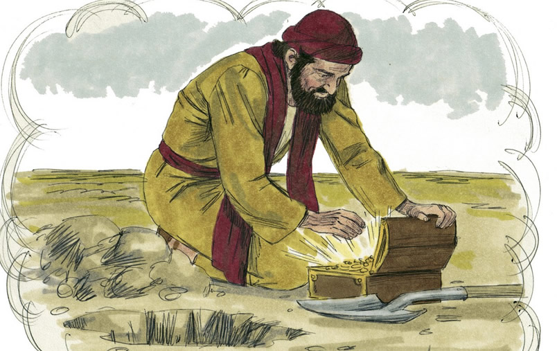 Səmavi Səltənət tarlada gizlədilən bir dəfinəyə bənzəyir. Tapan adam onu gizlətdi və sevinclə gedib bütün varını satıb o tarlanı satın aldı. Yenə Səmavi Səltənət gözəl mirvarilər axtaran bir tacirə bənzəyir. O, çox dəyərli olan bir mirvari tapanda gedib bütün var-yoxunu satıb onu satın aldı.
