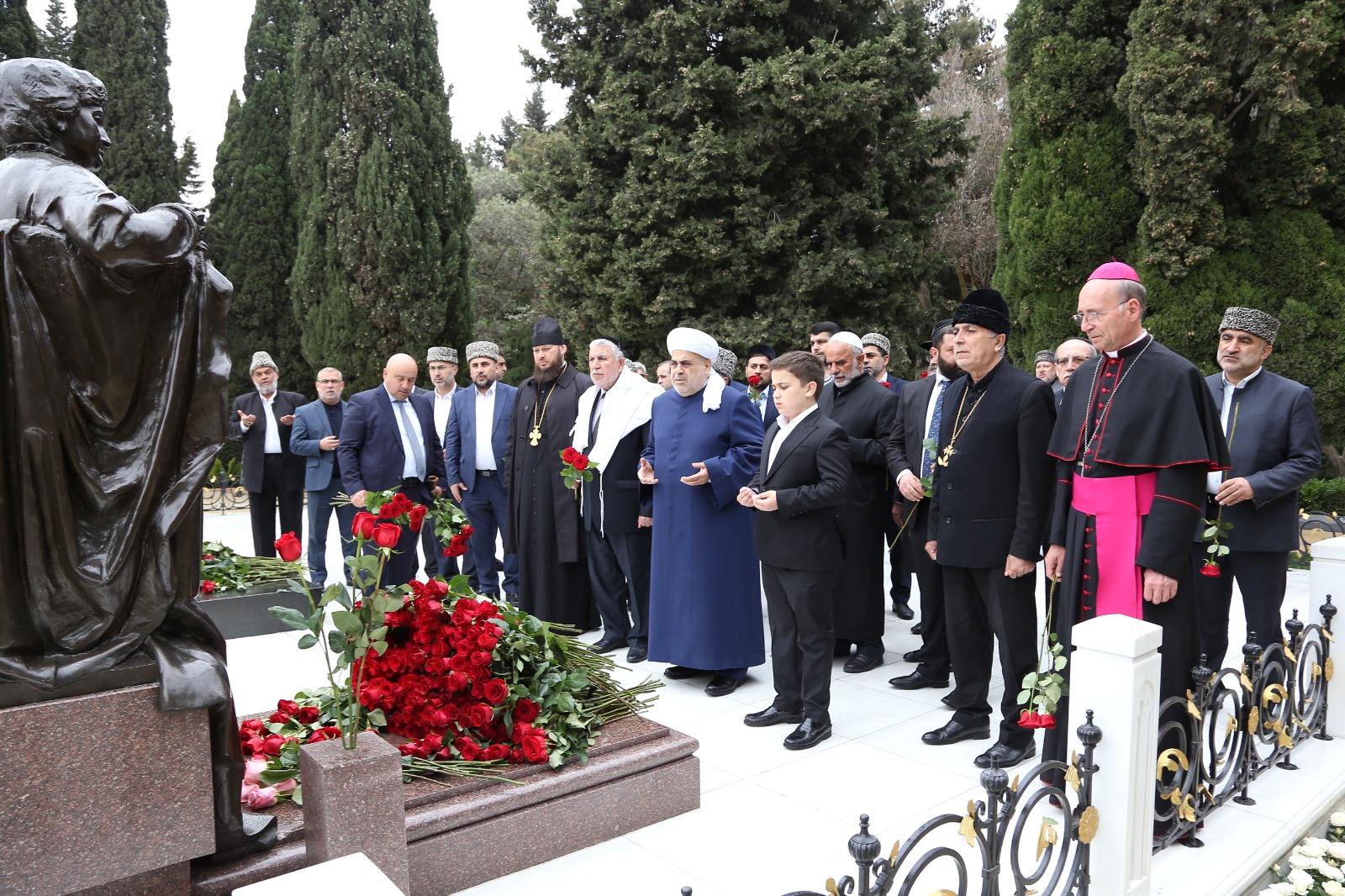 Qafqaz Müsəlmanları idarəsinin sədri, şeyx-ül-islam Allahşükür Paşazadə etdiyi Azərbaycanın ənənəvi dini konfessiyaların rəhbərləri və nümayəndələri Fəxri Xiyabana gələrək, Azərbaycan xalqının böyük oğlunun məzarı önünə gül dəstələri düzüblər, Heydər Əliyevin əziz xatirəsini dualar ilə yad ediblər.