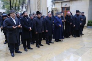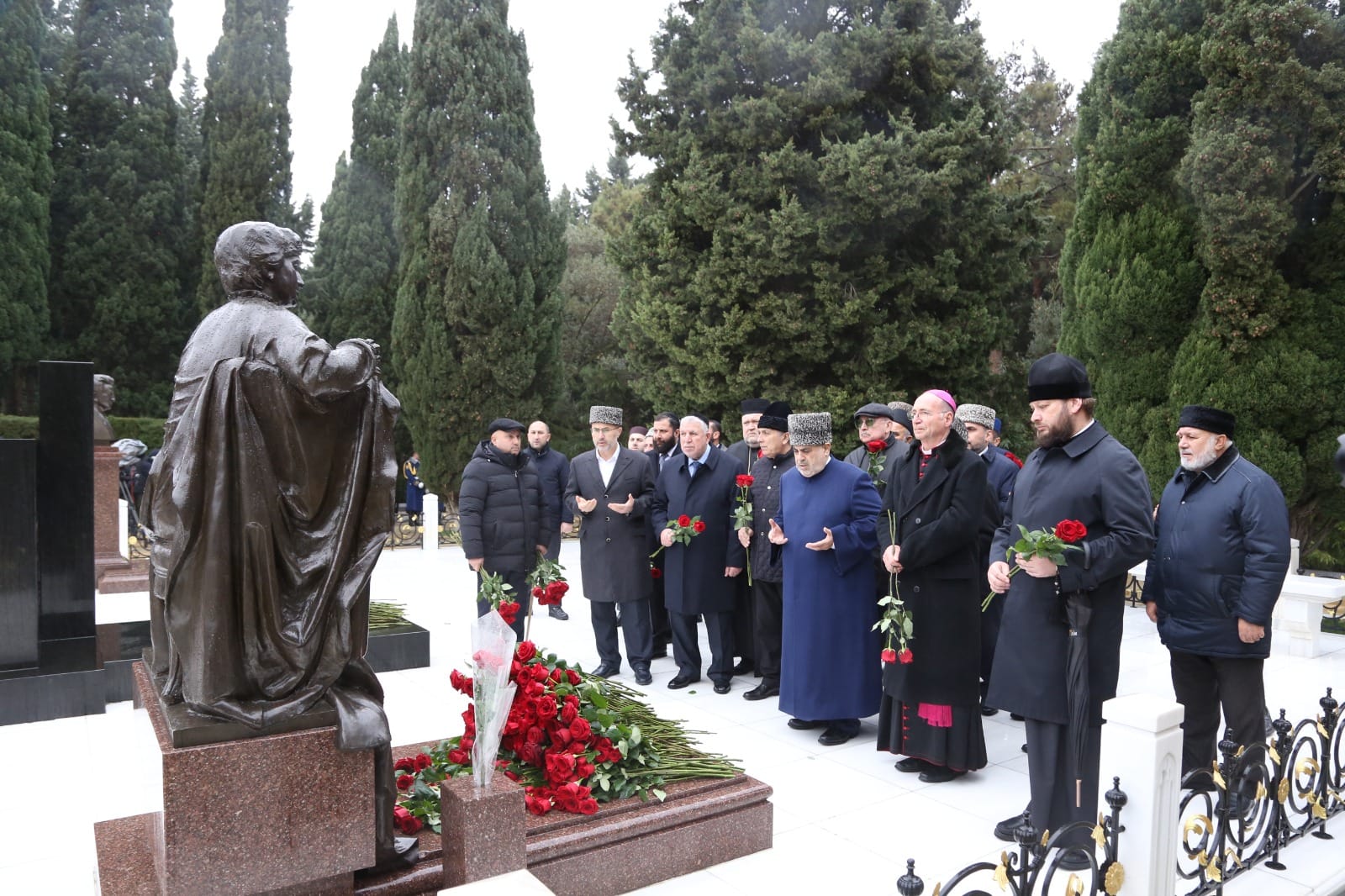 AZƏRBAYCANIN ƏNƏNƏVİ DİNİ İCMALARININ BAŞÇILARI HEYDƏR ƏLİYEVİN MƏZARI ÖNÜNƏ GÜLLƏR DÜZÜBLƏR