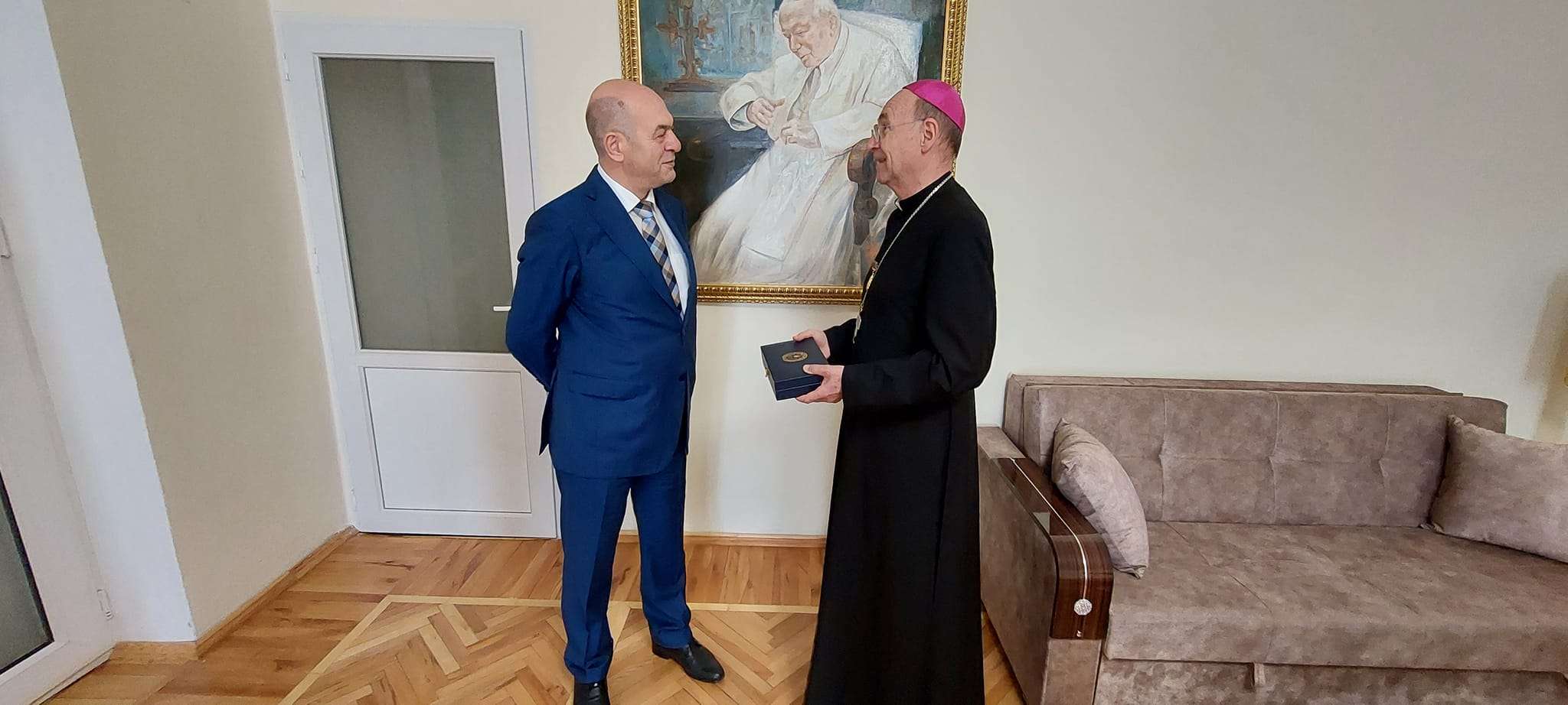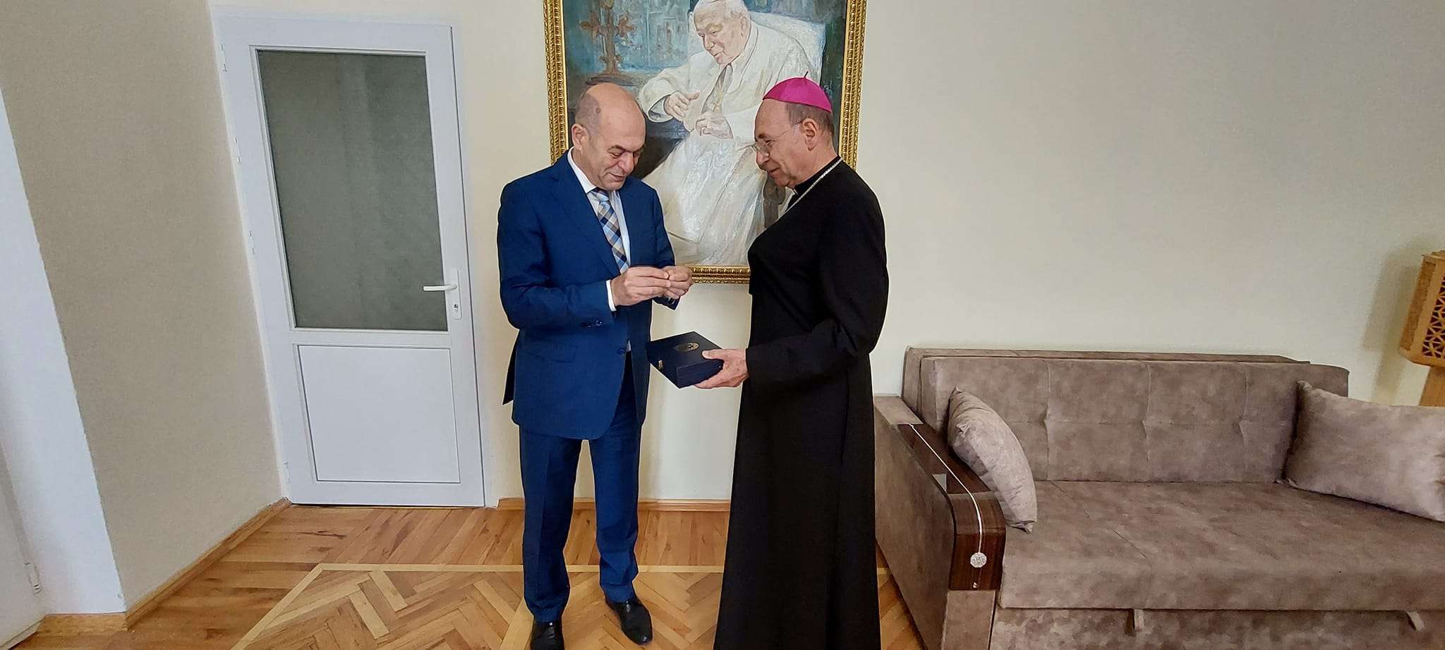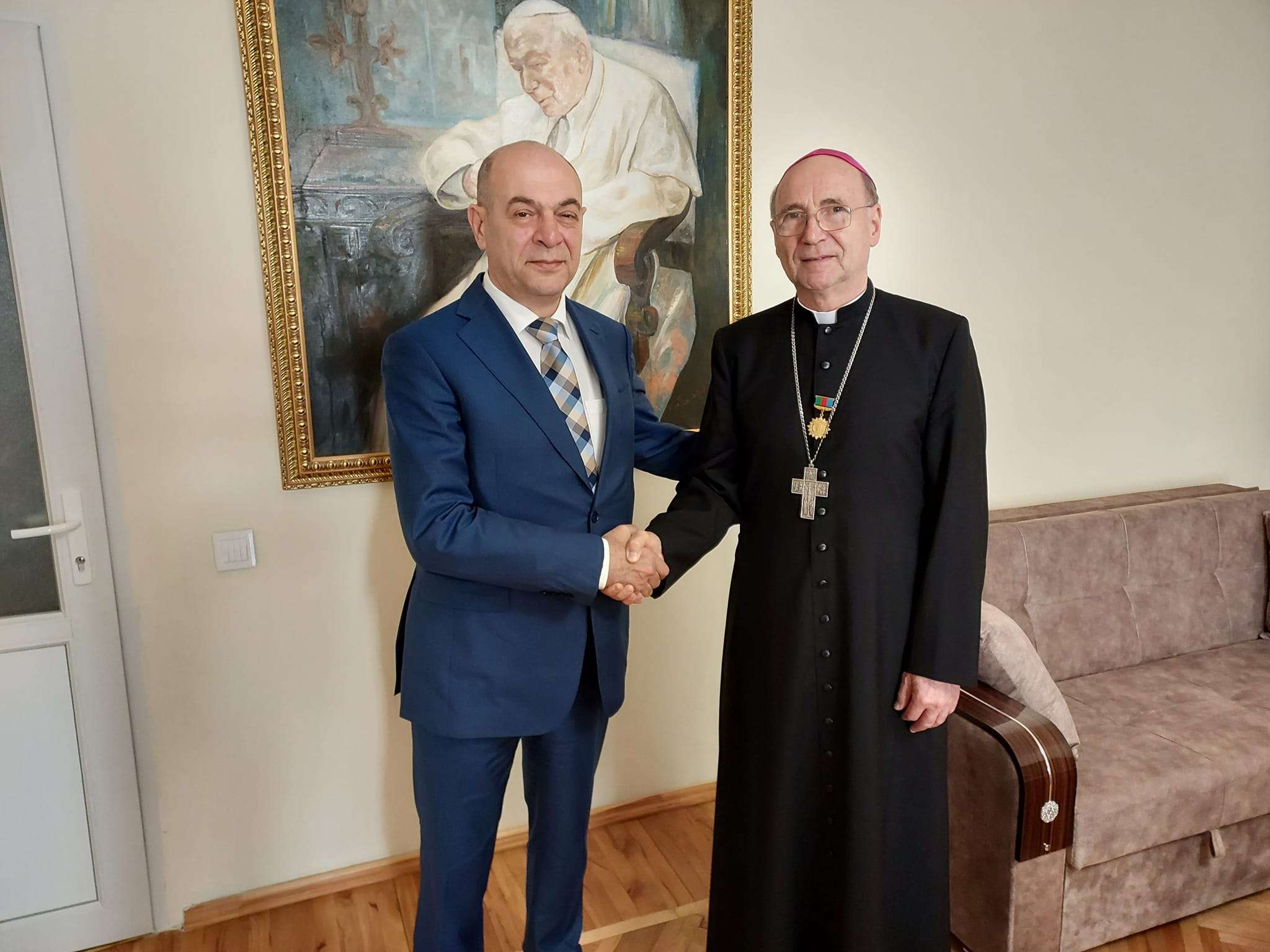 Yubiley medalını və vəsiqəni yepiskop Vladimir Feketeyə Dini Qurumlarla iş üzrə Dövlət Komitəsinin sədr müavini Sahib Nağıyev təqdim edib.