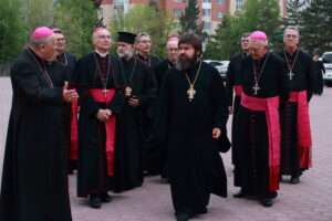 Mayın 3-də Astanada Mərkəzi Asiyanın katolik ordinarilərinin Rus Pravoslav Kilsəsinin nümayəndələri ilə görüşü olub. Astana və Qazaxıstan mitropoliti Aleksandrın adından katolik nümayəndə heyəti arximandrit Sergiy tərəfindən qəbul edilmişdir. Bu görüş qardaş dialoqun və xristian birliyinin dərinləşməsi yolunda mühüm addım idi. Ertəsi gün, mayın 4-də ordinarilər imanlılarla birlikdə Astanadakı Əqdəs Bakirə Məryəm arxiyeparxiyasının kafedral kilsəsində , ümumi dua üçün toplaşaraq Allahdan xeyirdua, bütün region xalqlarına sülh və birlik diləyiblər. Mərkəzi Asiyanın yerli kilsələrinin rəhbərləri bütün imanlıları sülh ənamı, tövbə ruhu, qarşılıqlı bağışlanma və anlaşma üçün dua etməyə, yaralı dünyanı Sülhün Mələkəsi Məryəmə əmanət etməyə çağırdılar.