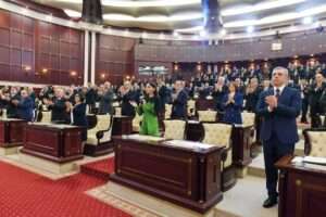 Milli Məclisin binasında keçirilən təntənəli mərasimdə dövlət xadimləri, millət vəkilləri, Qafqaz Müsəlmanları İdarəsinin sədri Şeyxülislam Allahşükür Paşazadə, ölkənin ənənəvi dini icmaların rəhbərləri, ictimayyət nümayəndələri iştirak ediblər.