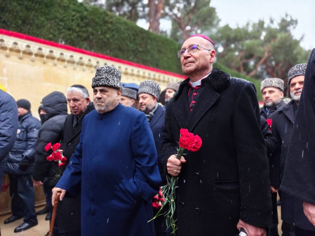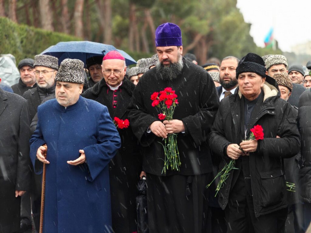 The heads of the country’s traditional religious communities led by the Chairman of the Caucasian Muslim Board Sheikh-ul-Islam Allahshukur Pashazade visited the Alley of the Fallen, paid tribute to those who died on the night of 1990′ s January 20 for the independence of Azerbaijan and the territorial integrity of the country and laid flowers at their burial place.