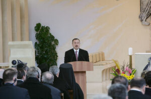 “…Сегодня знаменательный и незабываемый день в нашей жизни. В Азербайджане открывается католическая церковь, и я сердечно поздравляю по этому случаю всех проживающих в Азербайджане католиков… Я подхожу к этому событию с различных аспектов. Прежде всего, сегодня праздник католиков, проживающих в Азербайджане…С другой стороны, – это восстановление исторической правды, так как мы знаем, что в начале ХХ века в Азербайджане была построена католическая церковь, которая после большевистской революции была разрушена. Строительство и ввод сегодня церкви в действие означают восстановление исторической правды…. Это еще одно свидетельство высокого уровня религиозной терпимости, религиозной толерантности в республике. Это – наше большое достояние….это усиливает нашу страну“.