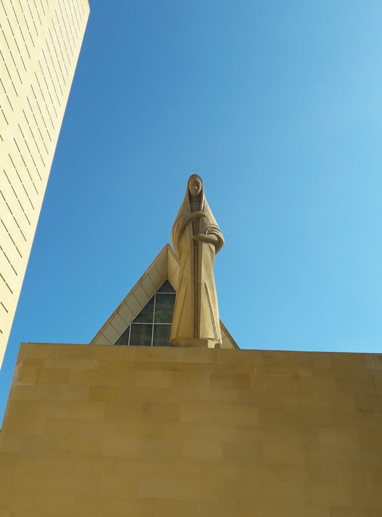 На фотографии: статуя Девы Марии на Храме Непорочново Зачатия в Баку