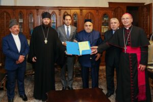 На встрече, организованной шейх-уль-исламом Аллахшукюром Пашазаде, присутствовал также апостольский префект Католической Церкви в Азербайджане, монс. Владимир Фекете.