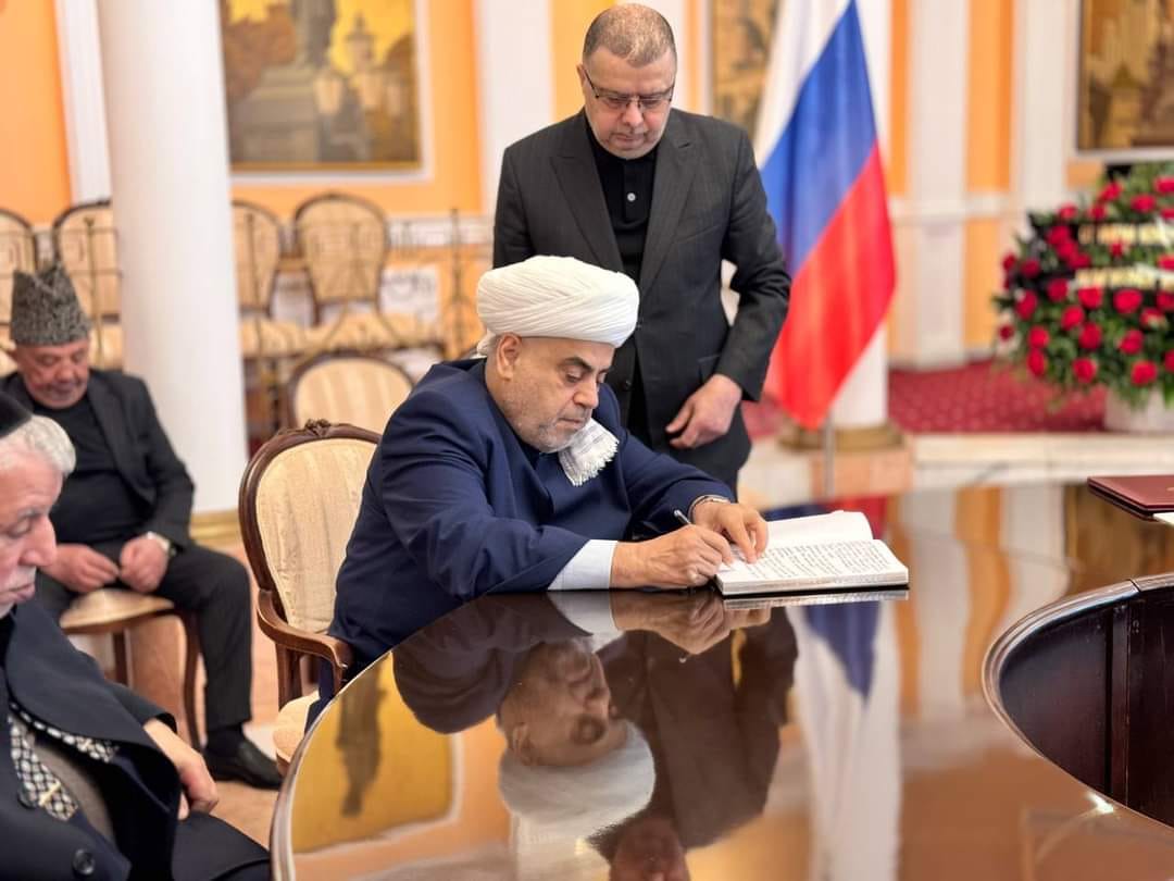 Члены Консультативного Совета религиозных конфессий Азербайджана, во главе с председателем Управления Мусульман Кавказа шейх-уль-исламом Аллахшукюром Пашазаде, посетили посольство Российской Федерации в Азербайджане и оставили запись в книге соболезнований в связи с терактом в концертном зале “Крокус Сити Холл”.