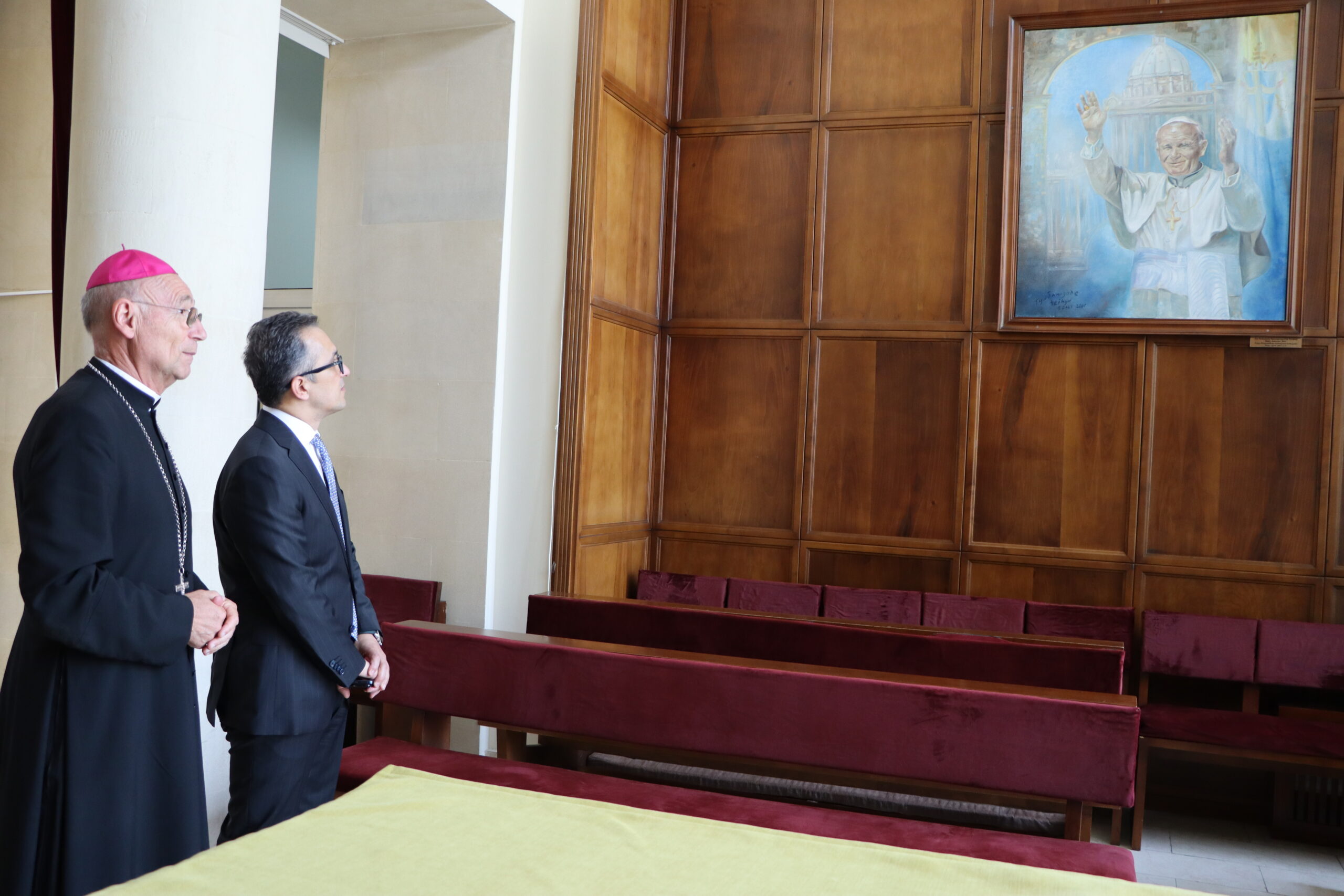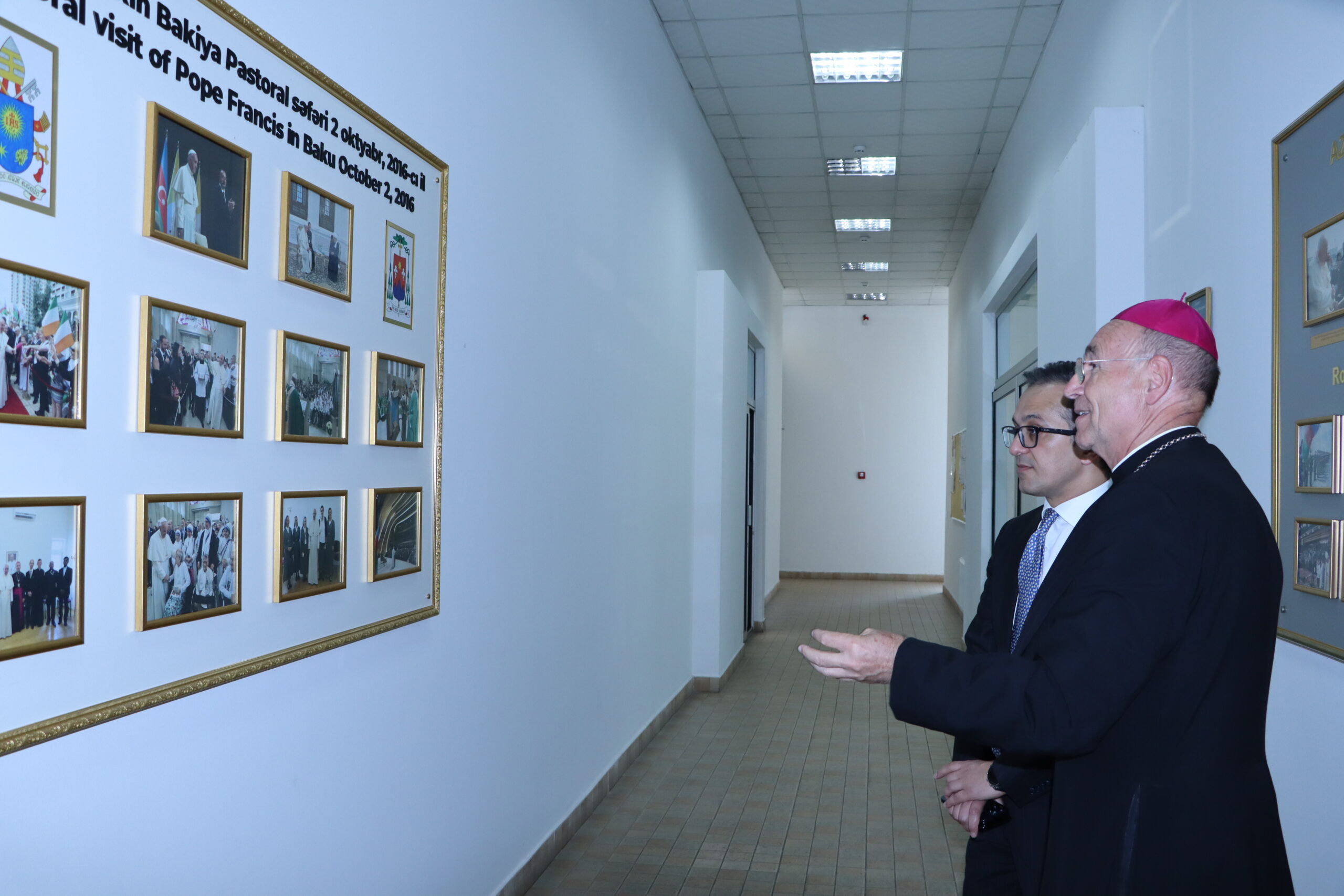 Также глава Государственного Комитета ознакомился с установленными в храме фото-стендами, демонстрирующими фрагменты исторических визитов Папы Иоанна Павла II и Папы Франциска в Азербайджан.