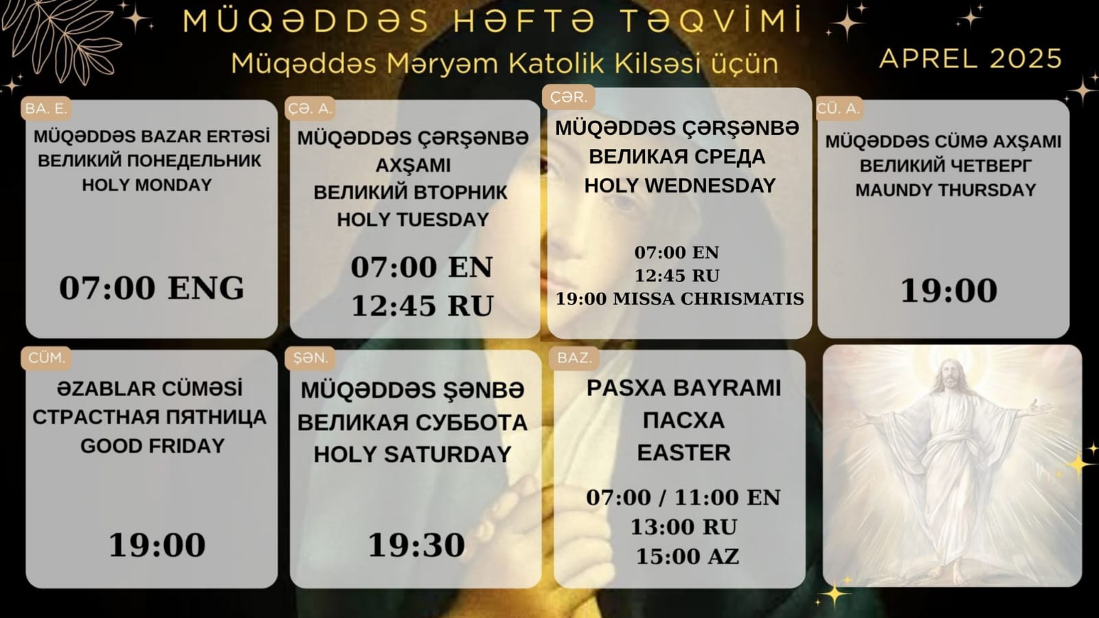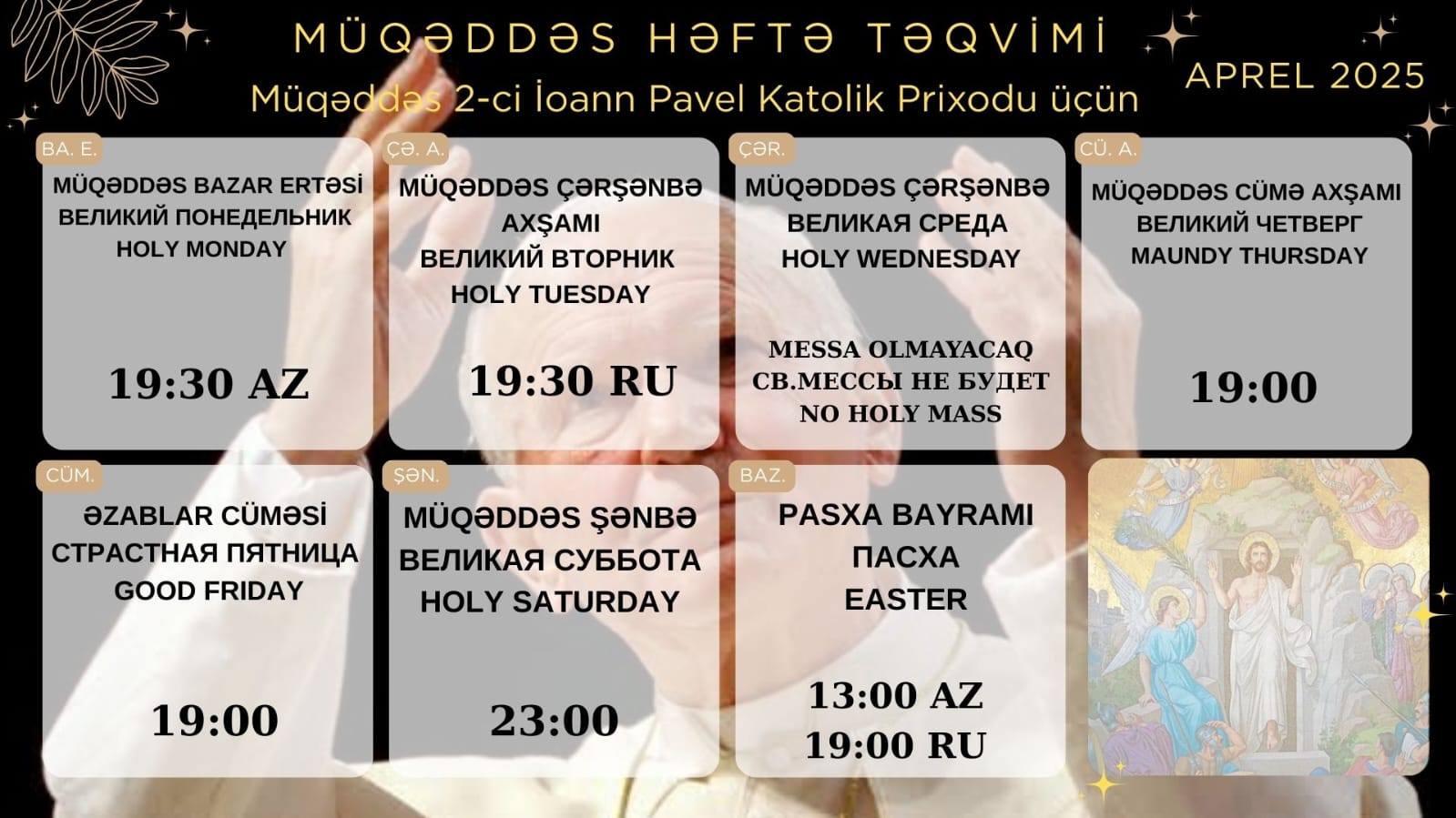 СТРАСТНАЯ НЕДЕЛЯ 2025 – в храме Непорочного Зачатия Пресвятой Девы Марии и в часовне св. Иоанна Павла II