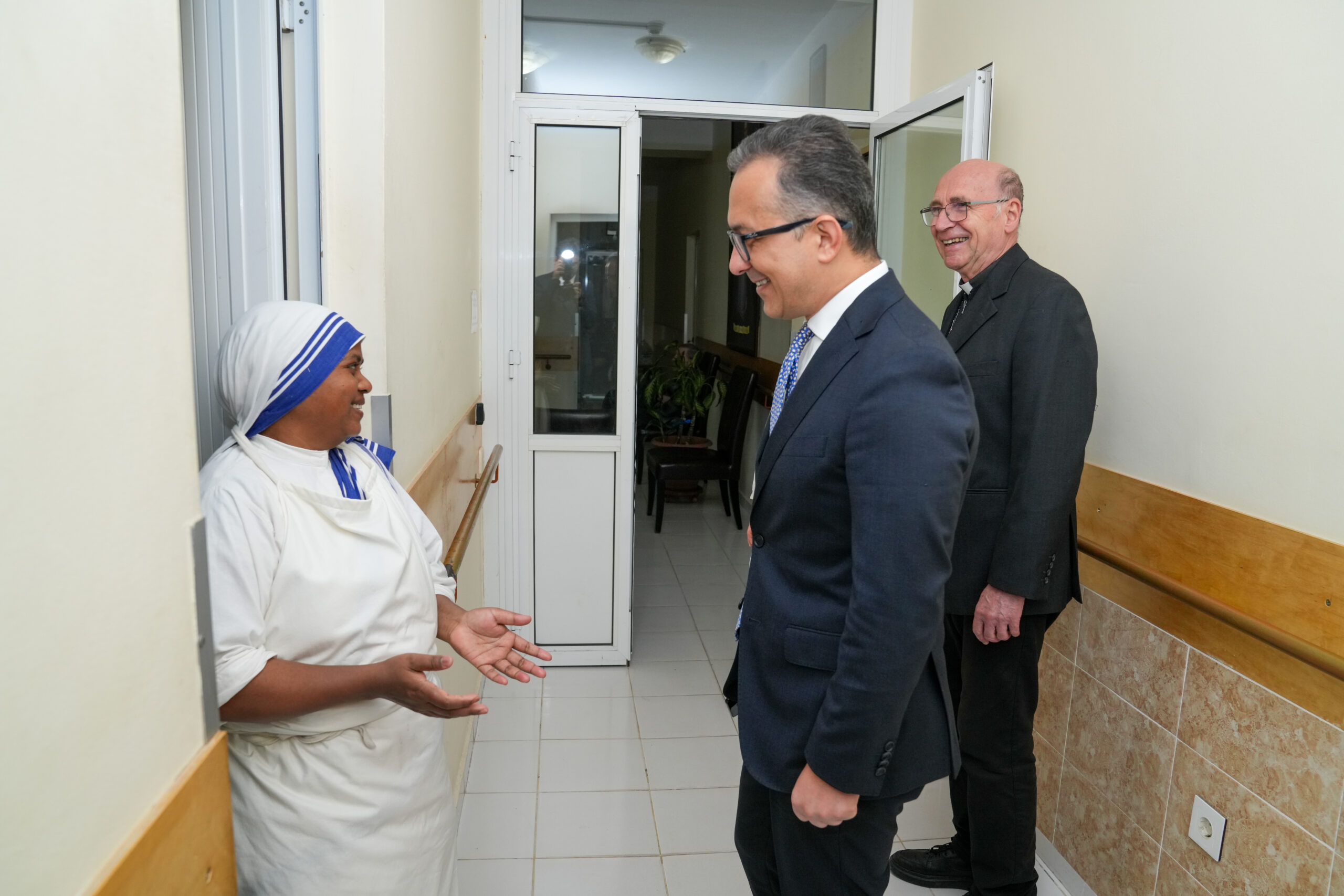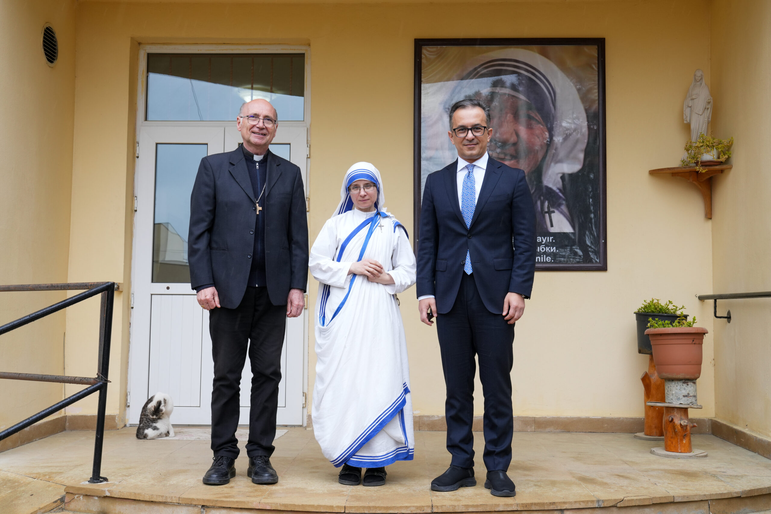 В Доме Милосердия высокого гостя приветствовали апостольский префект Католической Церкви в Азербайджане епископ Владимир Фекете и настоятельница ордена Святой Терезы Калькуттской в Азербайджане сестра Рафаэлла (MC).