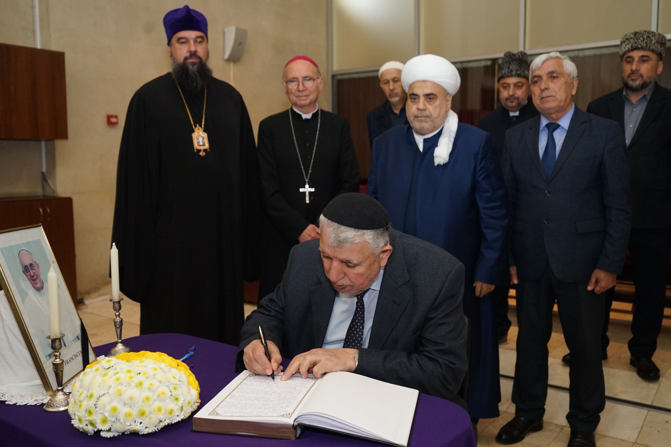 От имени Межрелигиозного Консультативного Совета страны в книге соболезнований, открытой в храме в связи с кончиной Папы Франциска, была оставлена запись.