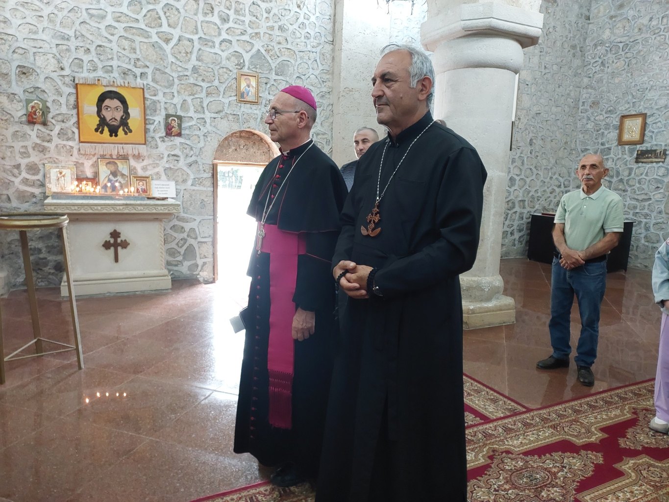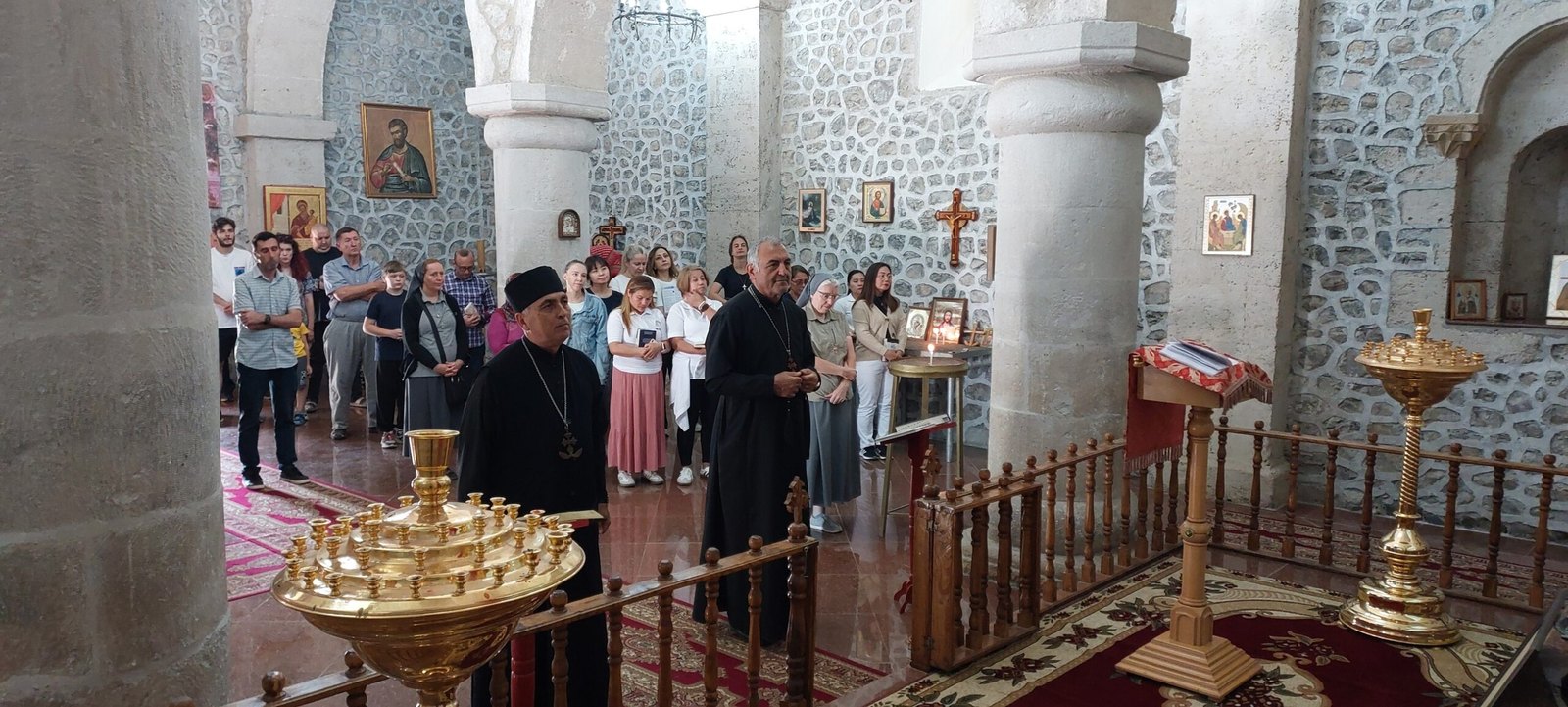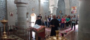 У древнего храма, посвященного святому Елисею, который, согласно местному христианскому преданию, был учеником апостолов Фаддея и Иакова, бакинских католиков тепло встретили председатель Албано-удинской христианской общины Роберт Мобили, духовный наставник общины Рафик Данакари и жители поселка.