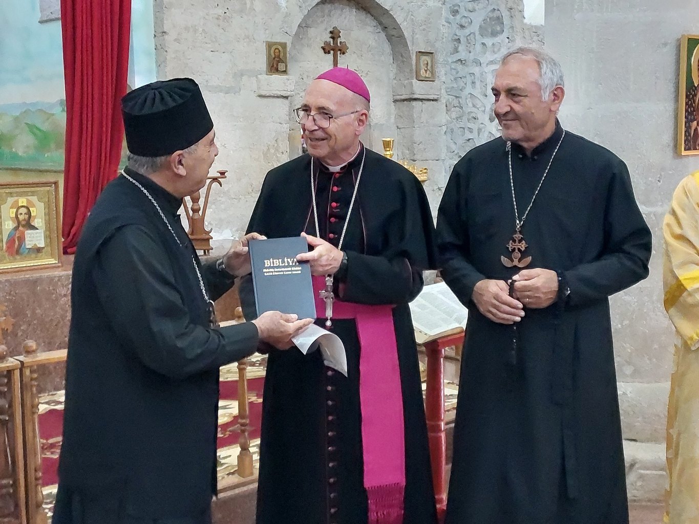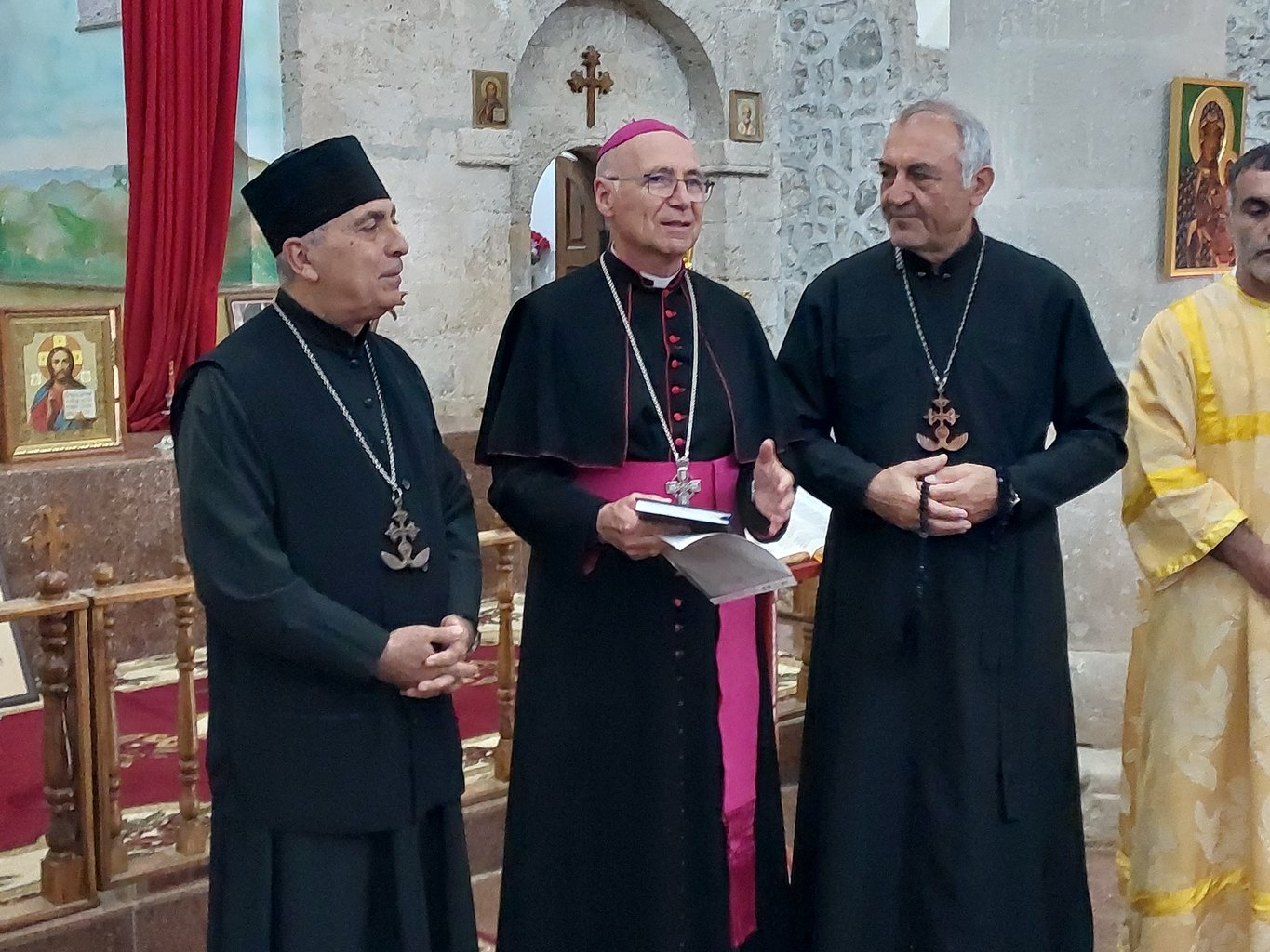 В память о совместной молитве епископ Владимир Фекете передал в дар храме св. Елисея икону Святейшего Сердца Иисуса. Председатель общины Роберт Мобили выразил благодарность епископу Владимиру и Апостольской Префектуре Католической Церкви в Азербайджане за братское отношение и поддержку общине удин Азербайджана.
