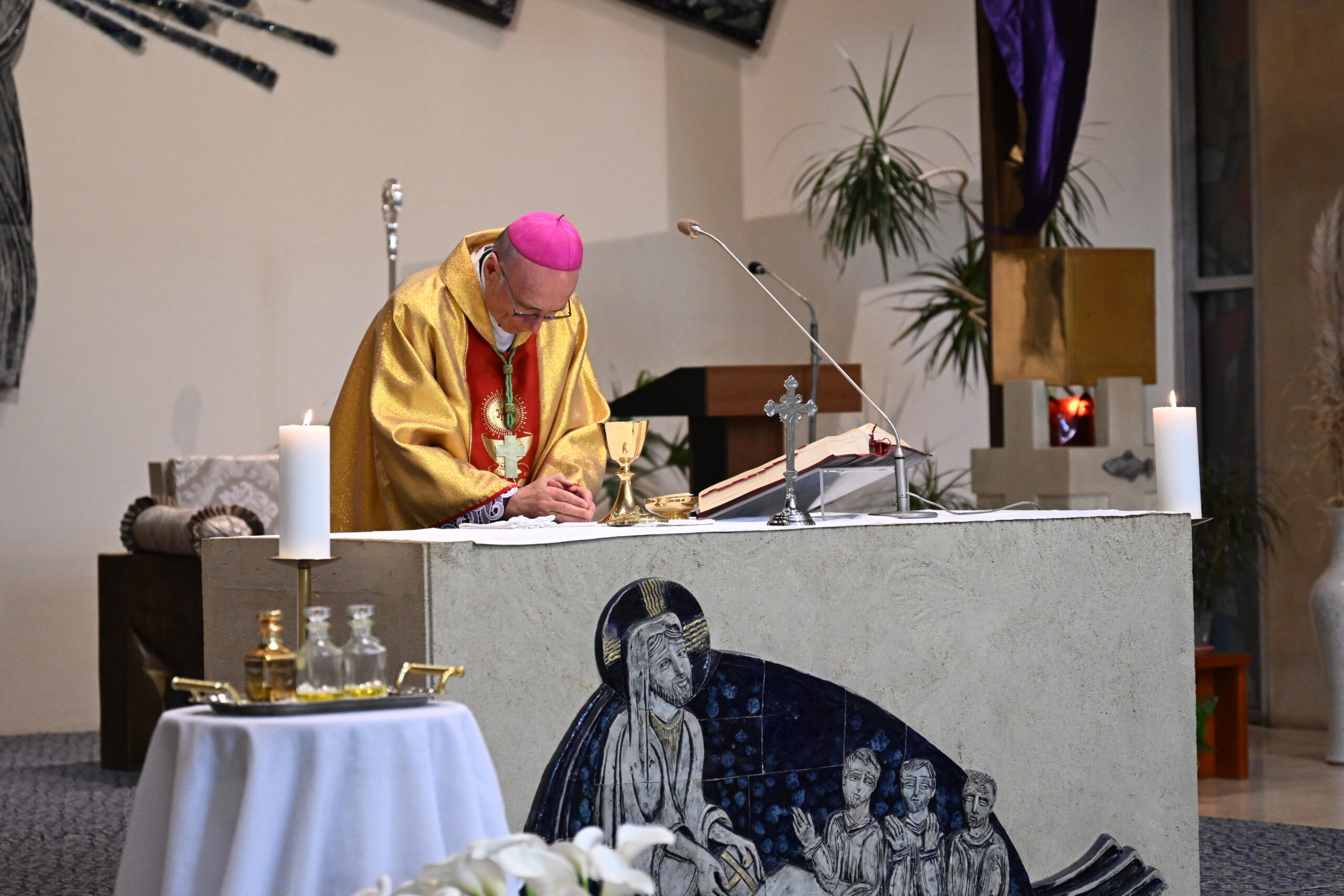 «В греческом языке слово “elaion” — “масло” — с древности связывалось со словом “eleos” — “милосердие”. Действительно, освящённое масло является знаком милосердия Божьего, которое проявляется в различных таинствах. Поэтому помазание на священство означает также миссию нести людям милосердие и благодать Божию. Чтобы исполнять это служение, мы должны заботиться о том, чтобы светильник нашей жизни всегда был наполнен елеем благодати и милосердия. Братья-священники, стремитесь каждый день принимать этот елей от Господа — в личной молитве, во встрече с Его Словом и Его Святыми Тайнами», — отметил епископ Владимир Фекете в своей проповеди.